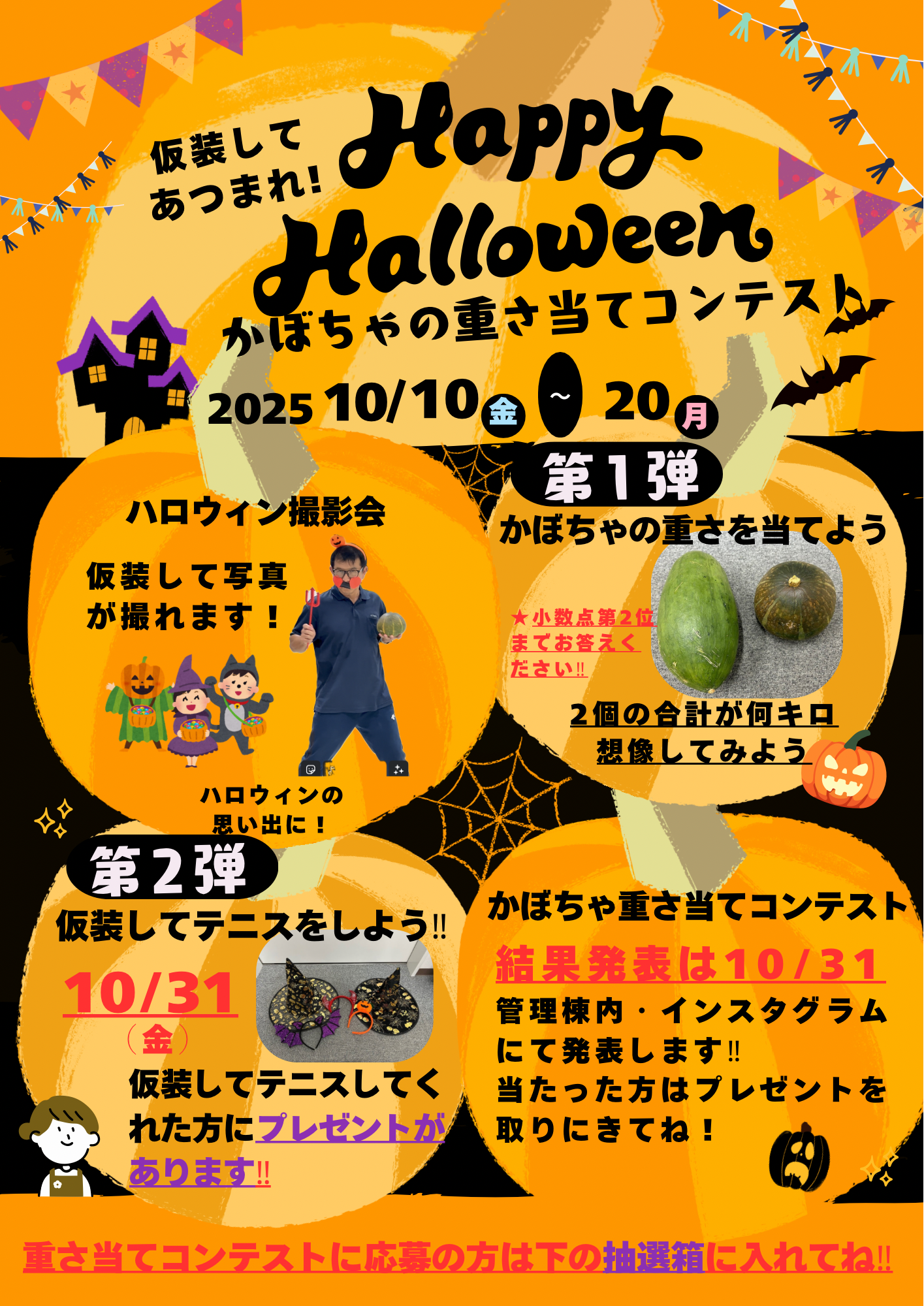 第1弾‼ 10/10(金)~20(月)カボチャの重さ当てコンテスト‼ 1位~5位の方にはプレゼントがあります🎁