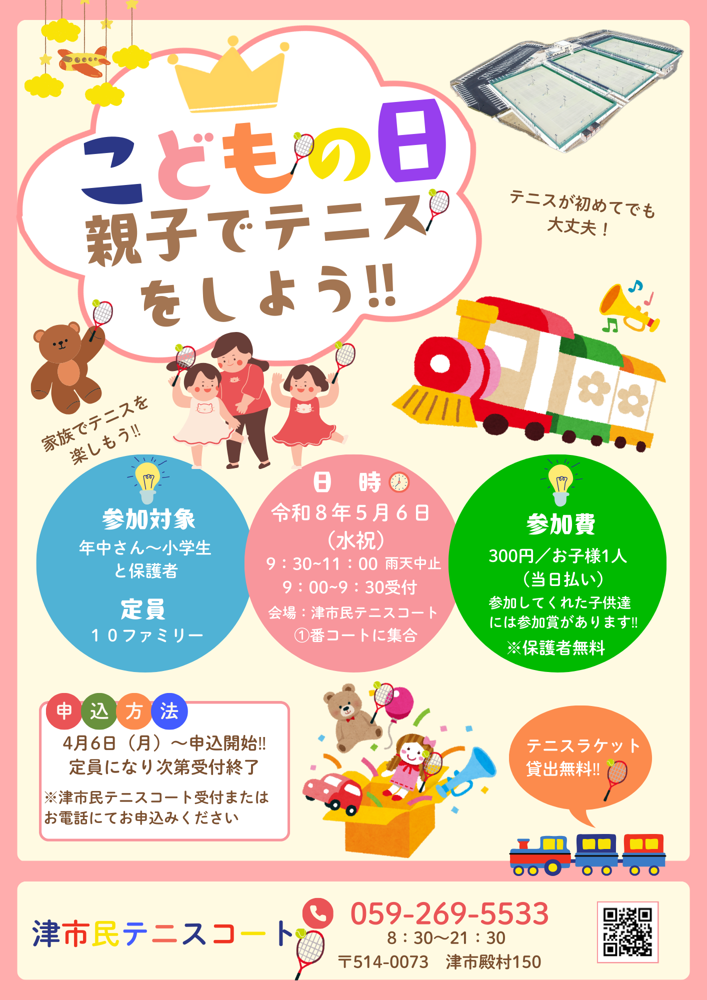 『こどもの日‼親子でテニスをしよう‼』開催のご案内